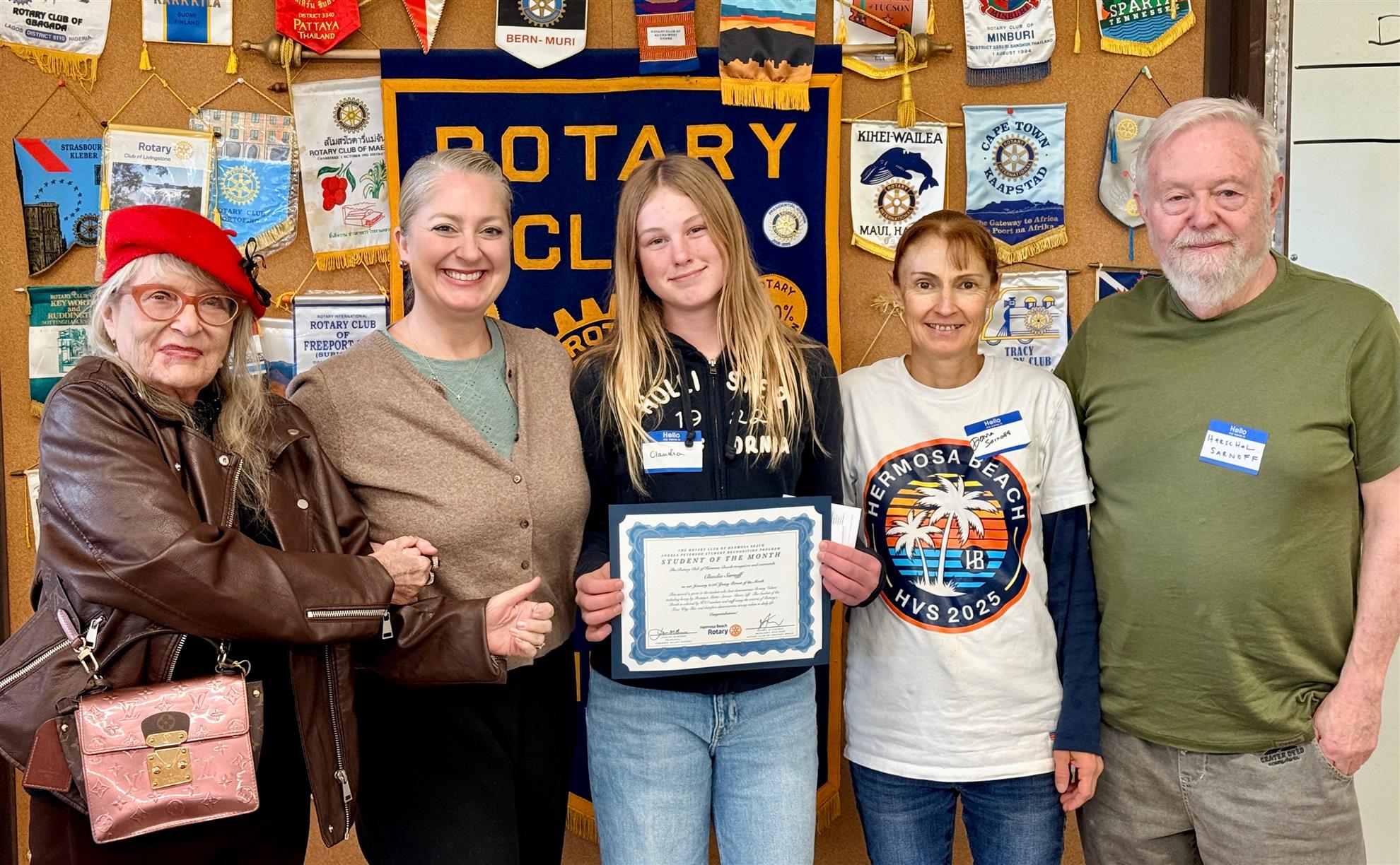According to HVS teachers, Claudia Sarnoff stands out amongst her peers because she is "conscientious." She considers Math and Spanish as her favorite courses, but also relishes writing fiction, which she does with her dad. She also likes to play soccer and basketball, and helps with animal rescue. Her mom, Donna, wanted us to know that Claudia has been helping their elderly neighbors with chores and companionship, a wonderful example of Rotary's motto: "Service Above Self." Congratulations, Claudia!